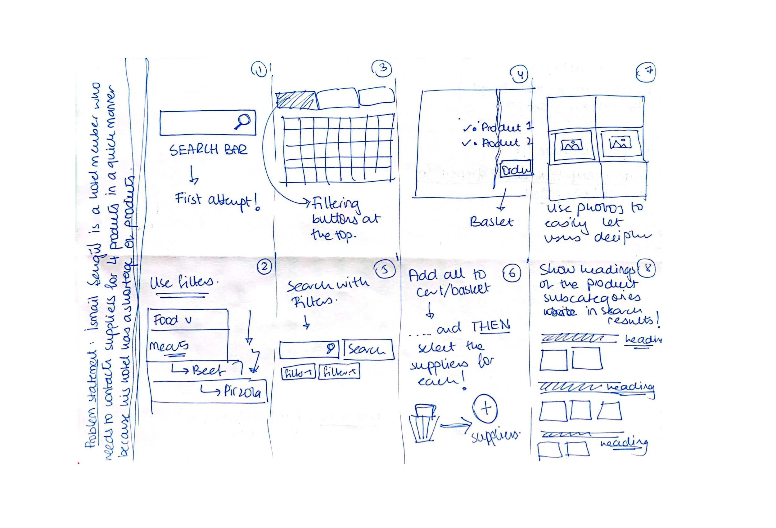 One of the methods of ideation or brainstorming is the crazy 8’s exercise. The challenge is to draw 8 sketches in 8 minutes, concerning a certain problem statement. I did a Crazy 8 exercise for a design problem in my current project, which later helped me to design the first few drafts of its Products Page